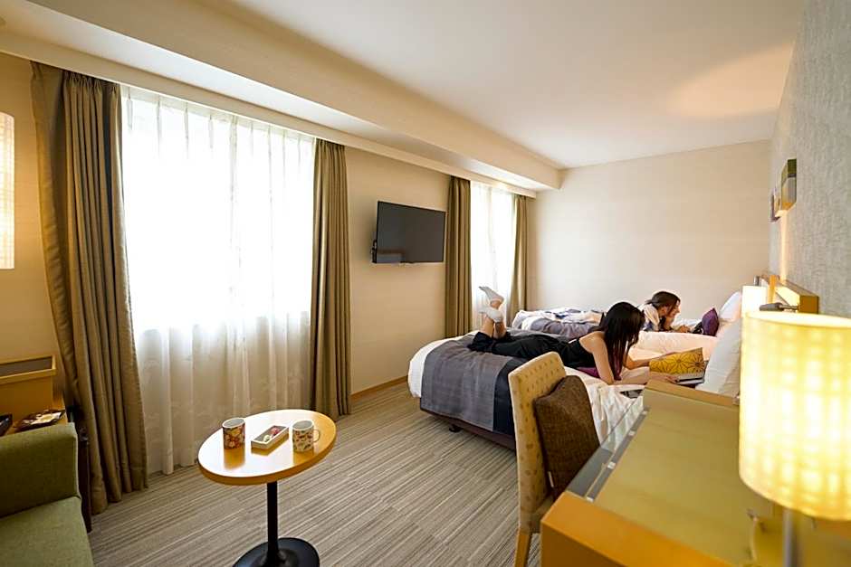 This twin room has air conditioning and electric kettle. Soft lighting and light wood furnishings decorates this room. Includes a tea maker and air purifier.